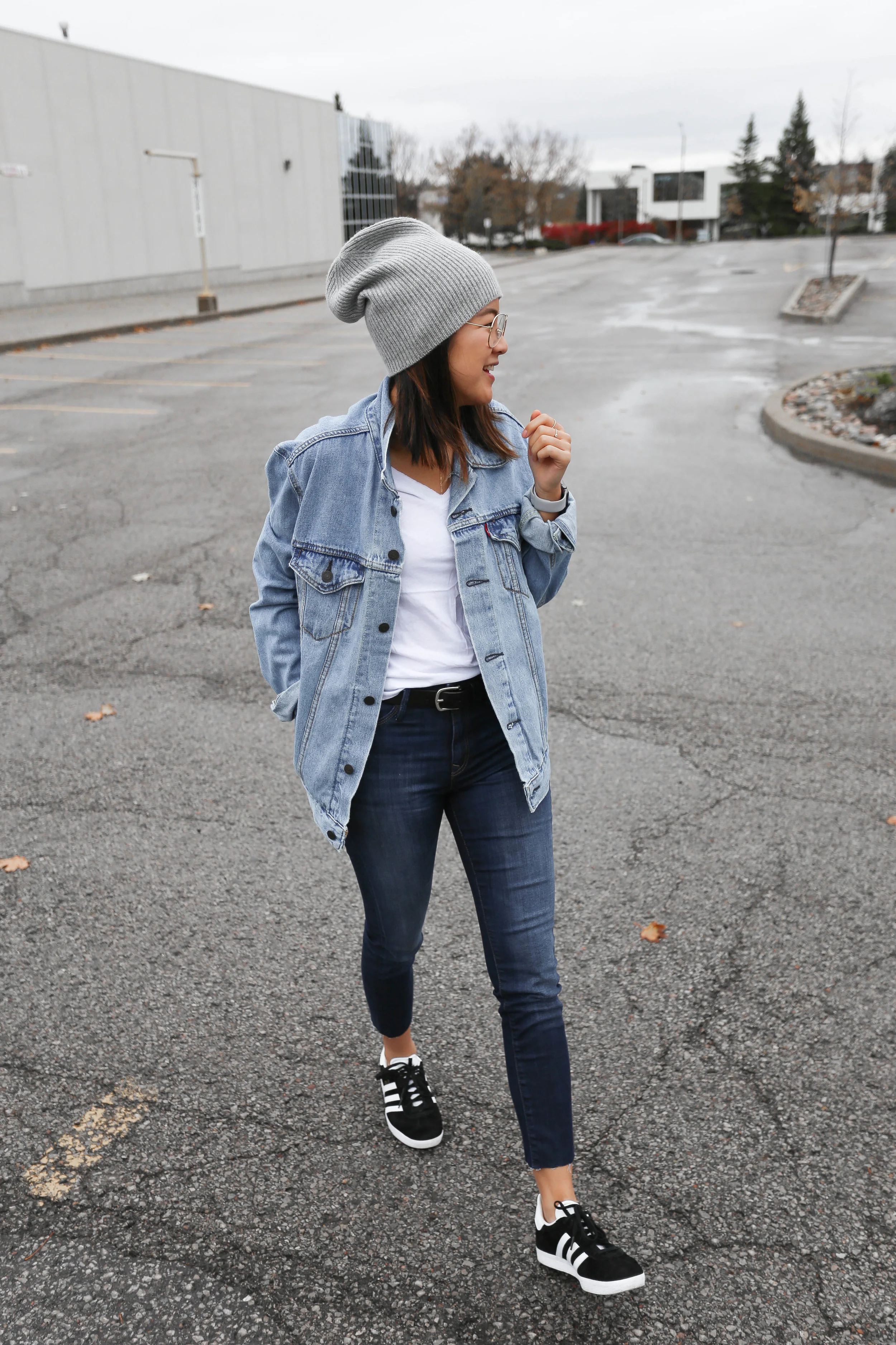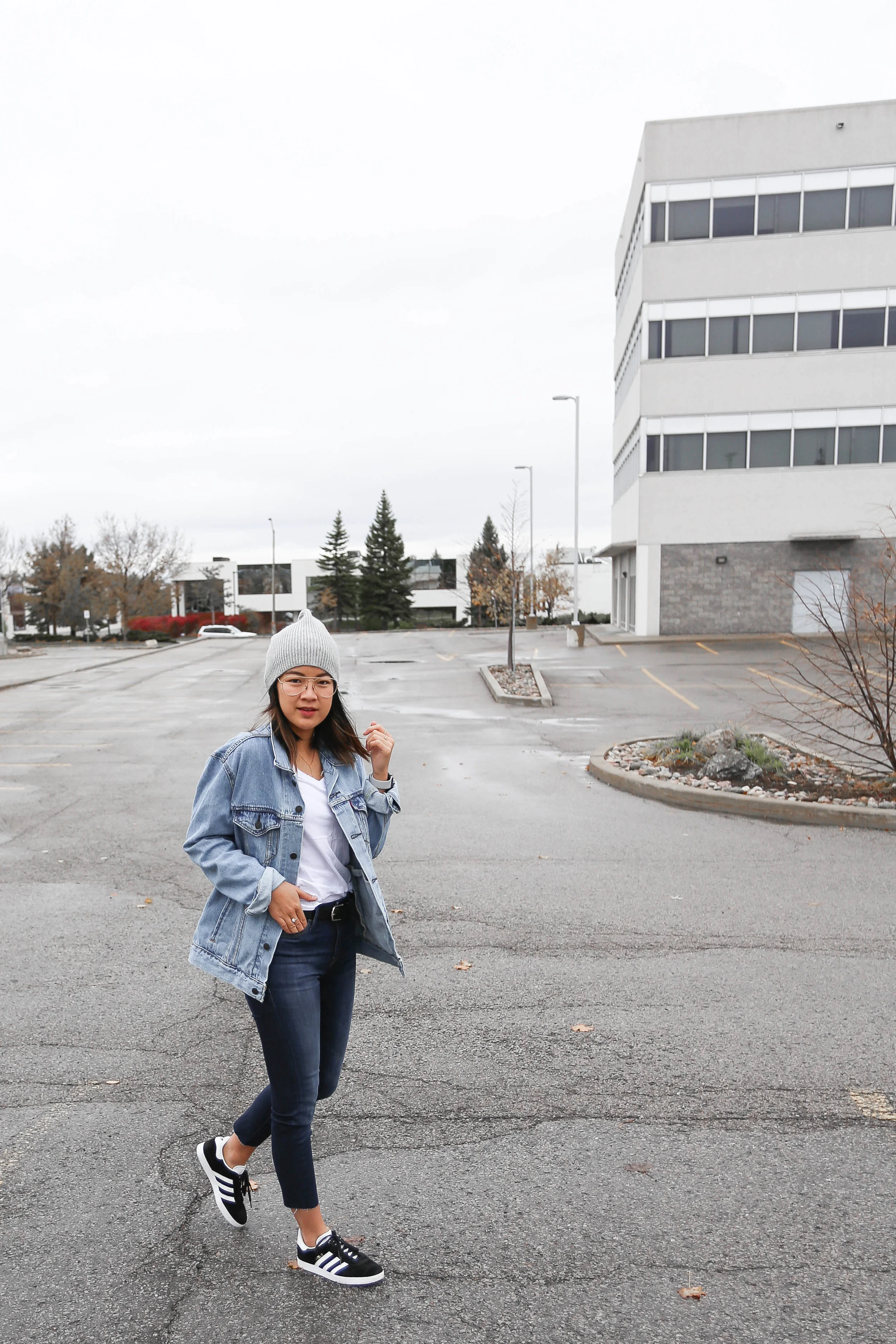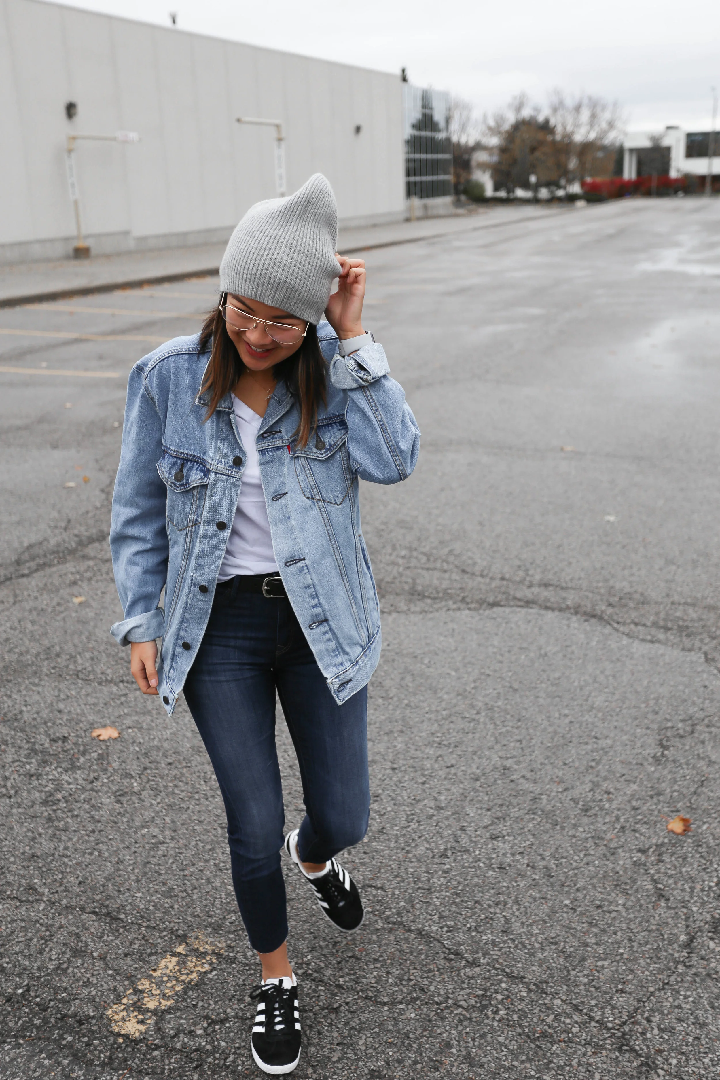 I found the perfect fall staples here - an oversized Levi's jacket that I've been on the hunt for (DIY coming soon) + the hard to find Adidas Gazelles in Black/White in my size (which is SO hard to find since I have tiny feet!).