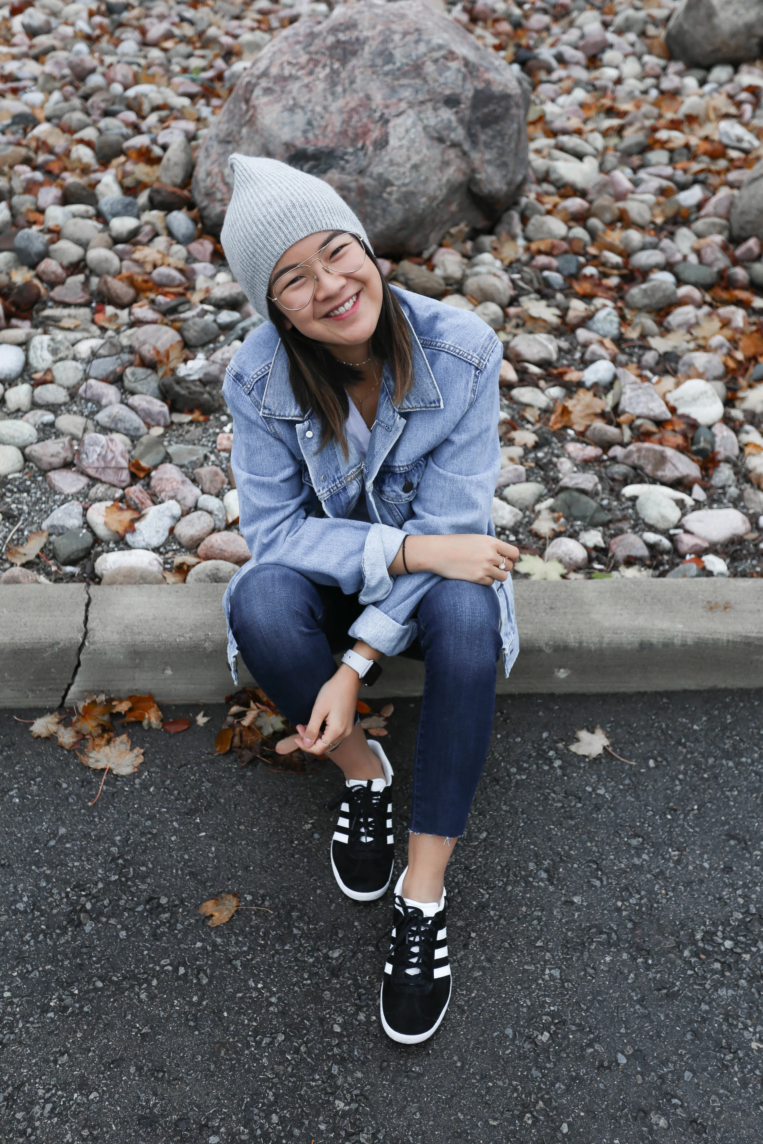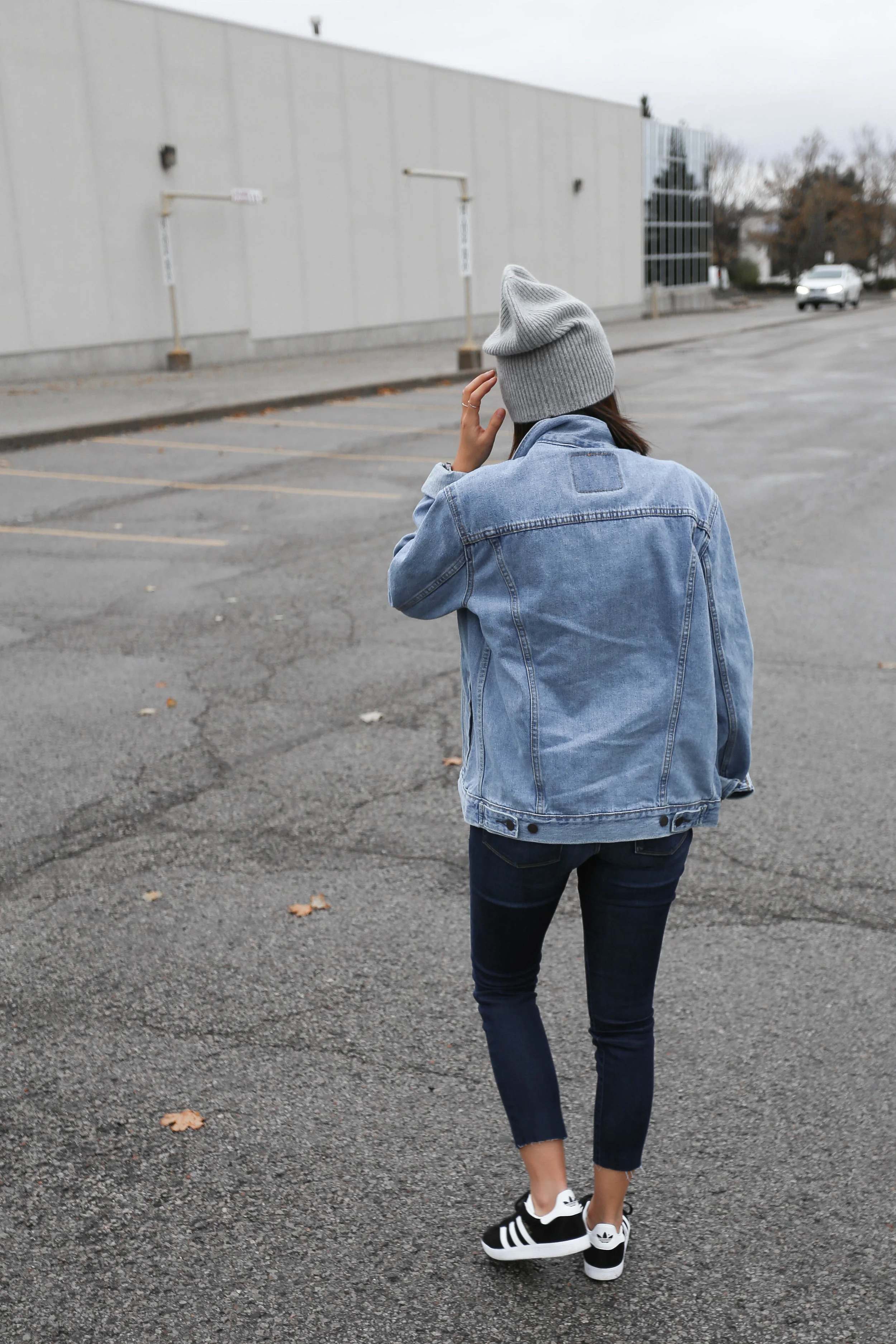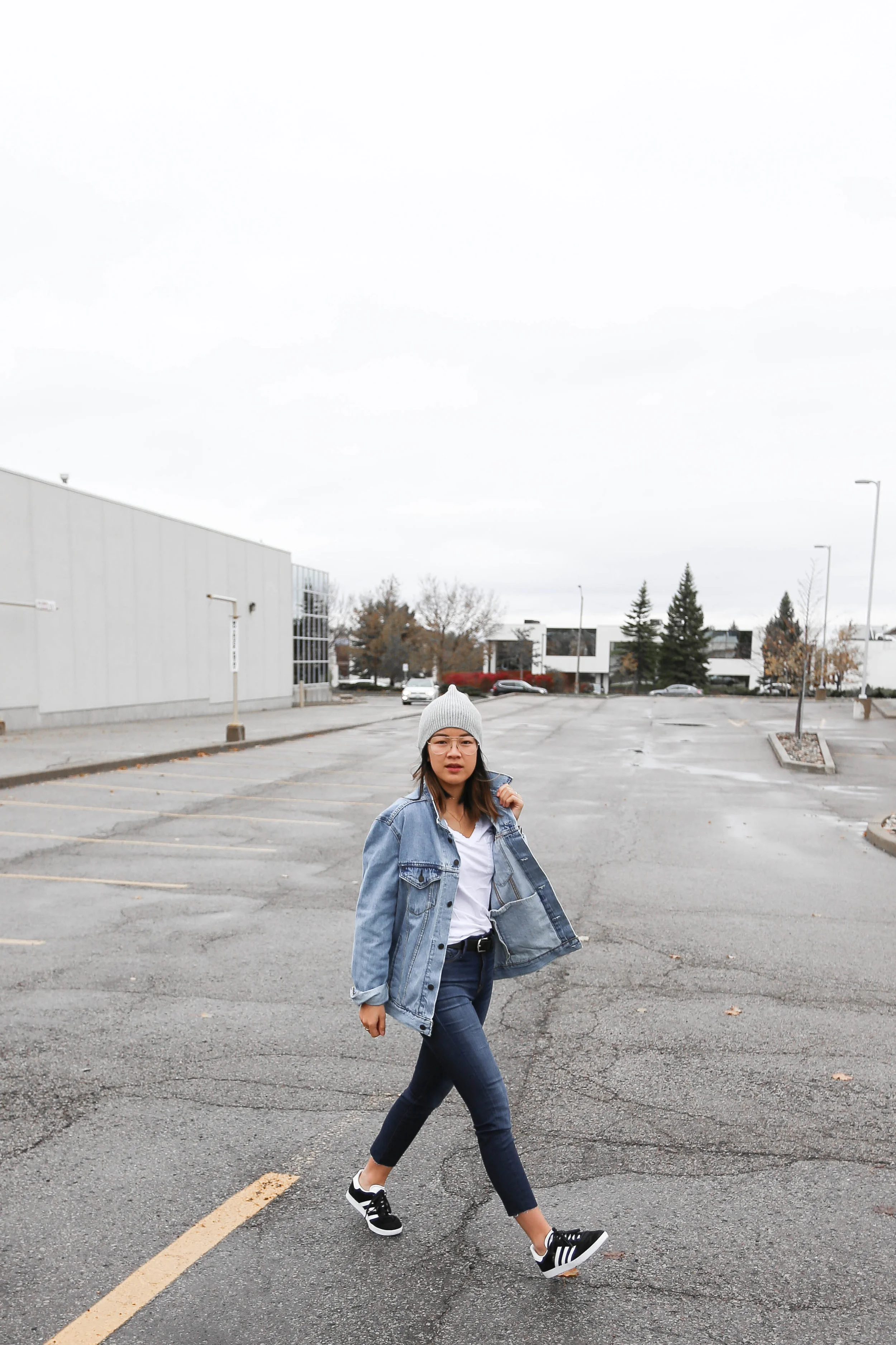 I found the perfect fall staples here - an oversized Levi's jacket that I've been on the hunt for (DIY coming soon) + the hard to find Adidas Gazelles in Black/White in my size (which is SO hard to find since I have tiny feet!).